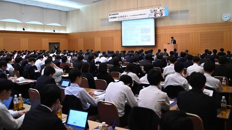 2日目の26日には、全国から集まった約220人の理工系の学生が今後のキャリアの参考になるセミナーを聴講した。松浦機械製作所の松浦勝俊社長ら3件の講演のほか、「工作機械エンジニアとしての現在と未来」と題した座談会もあり、学生は熱心に聞き入った。