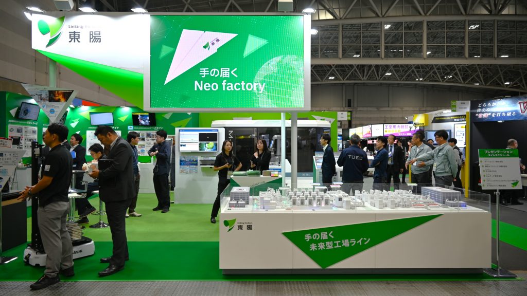 東陽(3D09)は「手が届くスマートファクトリー」をテーマに、デジタル技術やモノのインターネット(IoT)でつながる未来の工場の姿を提案する。ブースでは自動搬送システムや協働ロボットシステムなど最新の自動化ソリューションを中心に展示している。