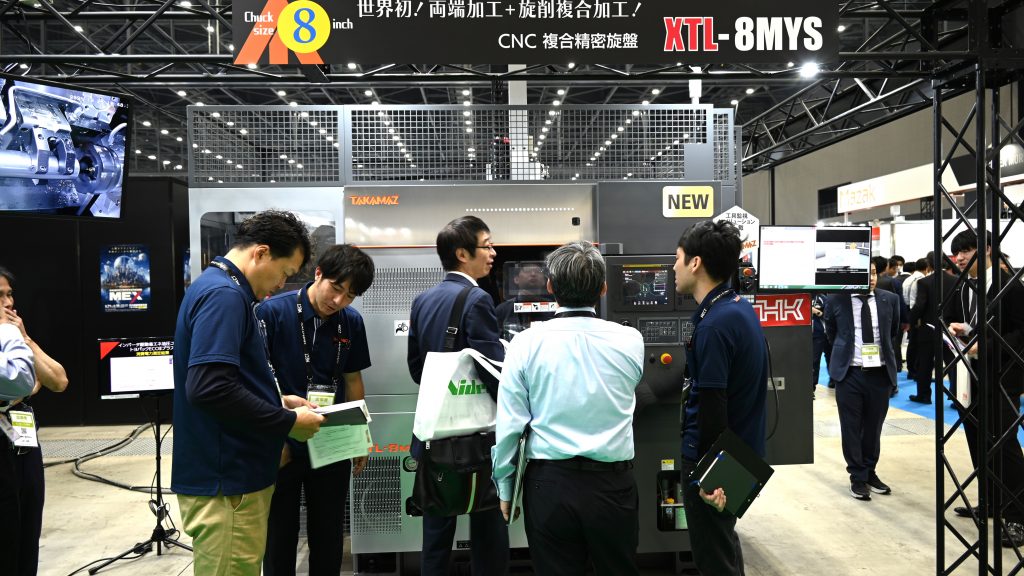 高松機械工業(1B33)はCNC複合精密旋盤「XTL-8MYS」の両端加工仕様をMECTで初披露した。近年増加するシャフト系ワークの両端加工のニーズを取り込む。