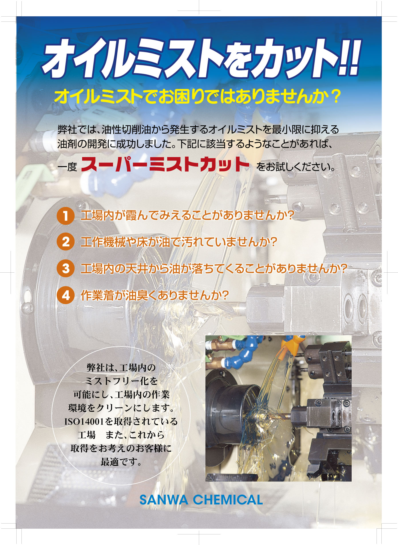 マグセパやサイクロンでは捕集しきれない微細スラッジをも捕集し、液中のコンタミを除去。スクラッチ等の不良発生率を激減。超硬工具研削やホーニング、一般研削に加え自動盤での切削においても成功事例多数。