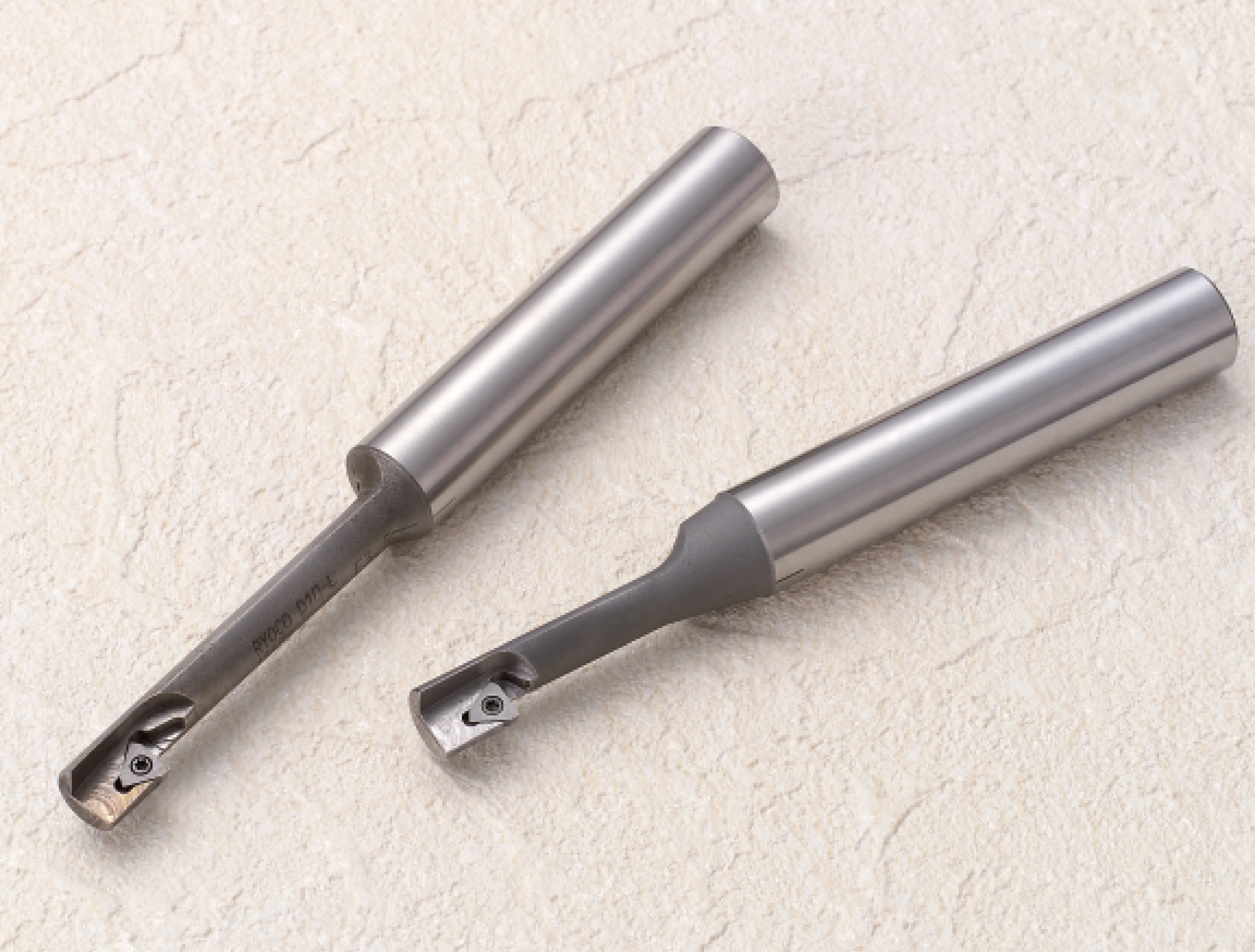 ワークを裏返しにしなくても裏加工が出来る工具です。段取り替えの時間短縮となります。特徴としては、首長に超硬ロー付けをしている為、強度が有り、折れにくいです。