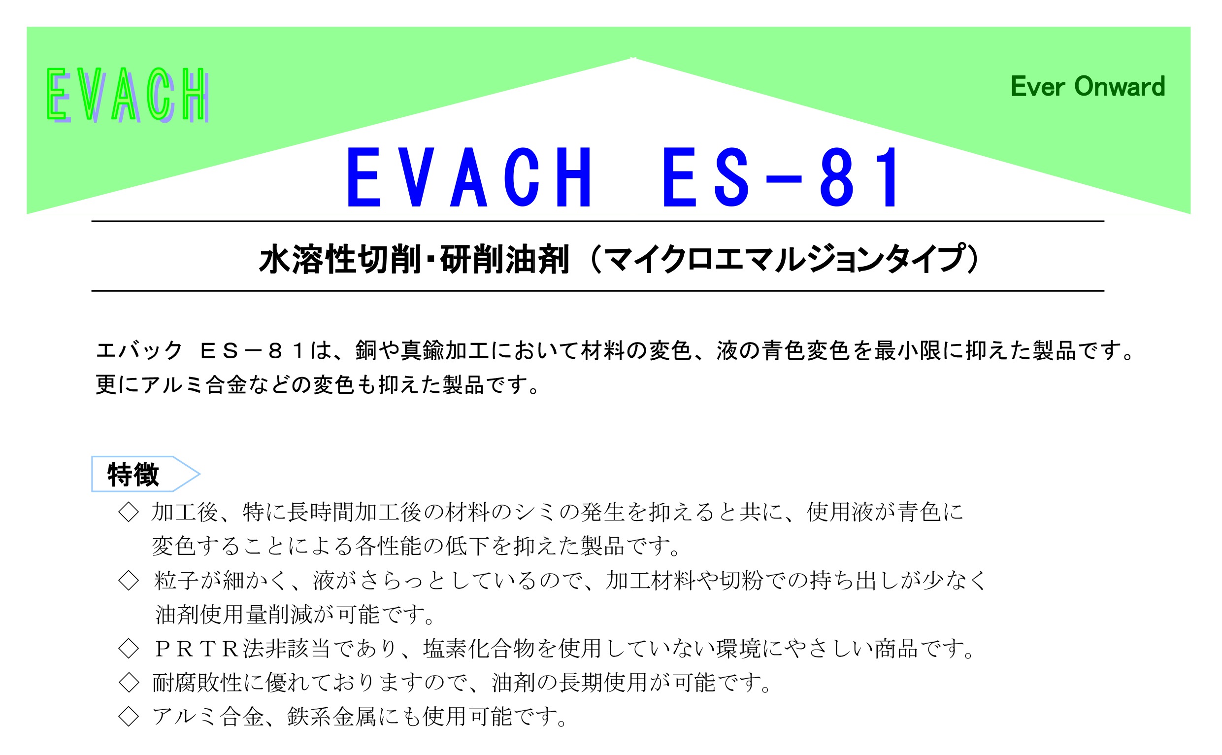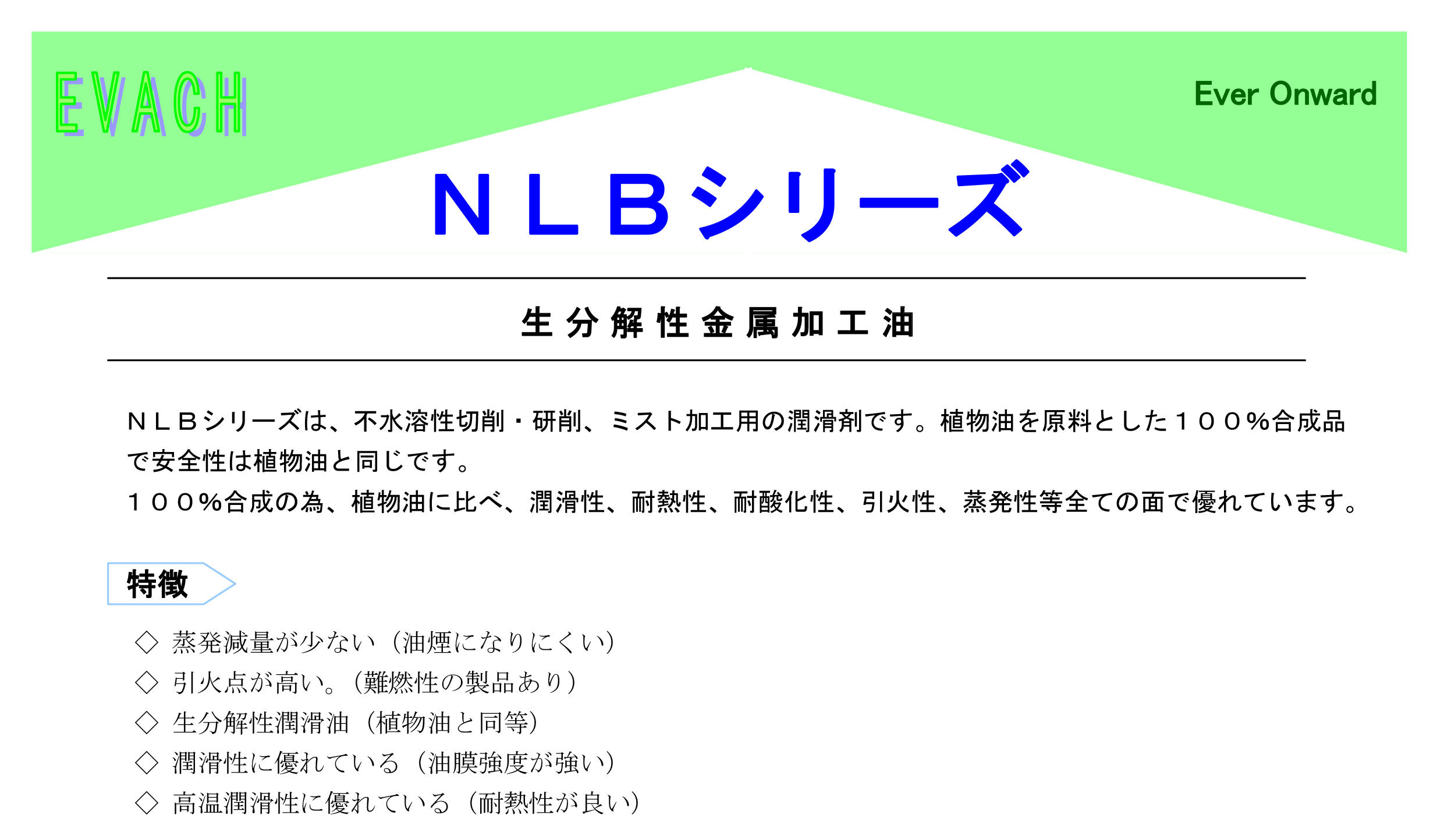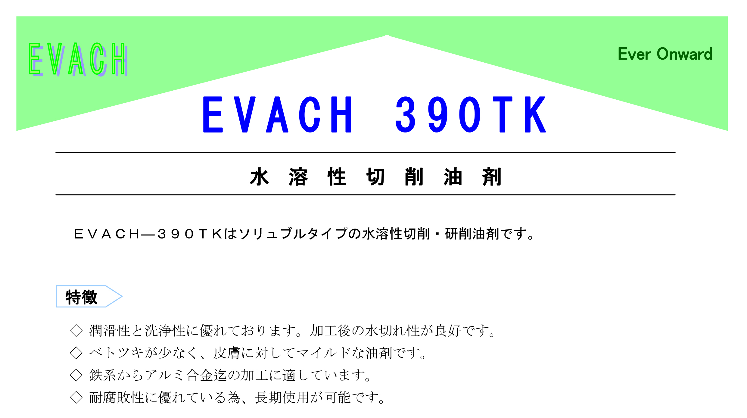 水溶性エマルジョンタイプ ステンレス鋼・合金鋼・アルミ合金・アルミ鋳物・砲金まで様々な被削材へ対応。 特に工具へ付加の高い重切削加工に最適。 難削材も楽々切削。