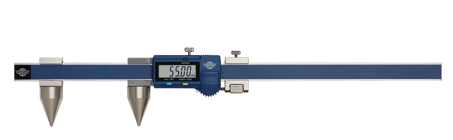 同径穴のセンターピッチ測定を直読で読めるデジタルノギス。スケールは電磁誘導式を採用し、スライダーを高速移動してもスケール読取誤差が起きない生産性向上モデルへ進化