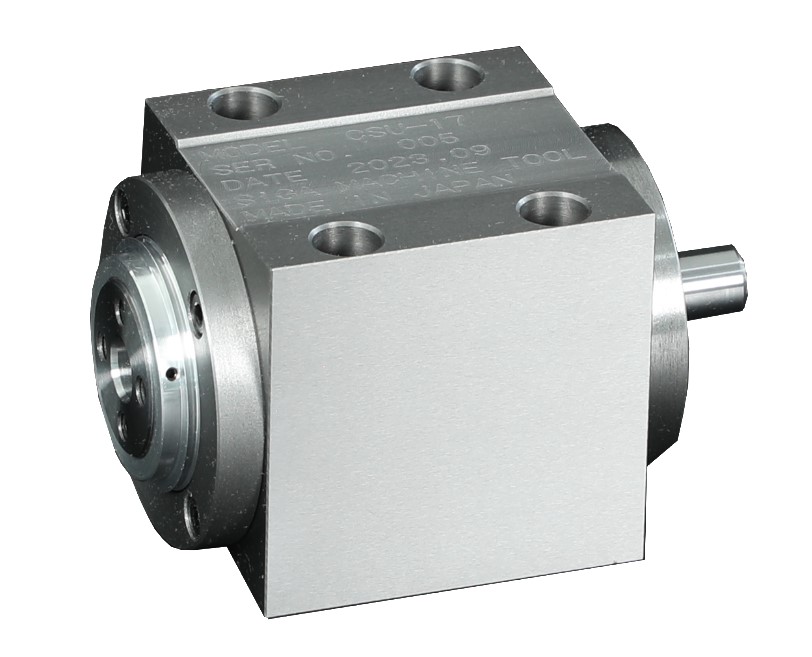 サイズ:60x60x60 重量:鋳鉄ボディ 2kg以下 アルミボディ 1kg以下 常用最高回転数:20,000rpm 振れ精度:2μ以内 設備の小型化、付加軸、ロボット切削、