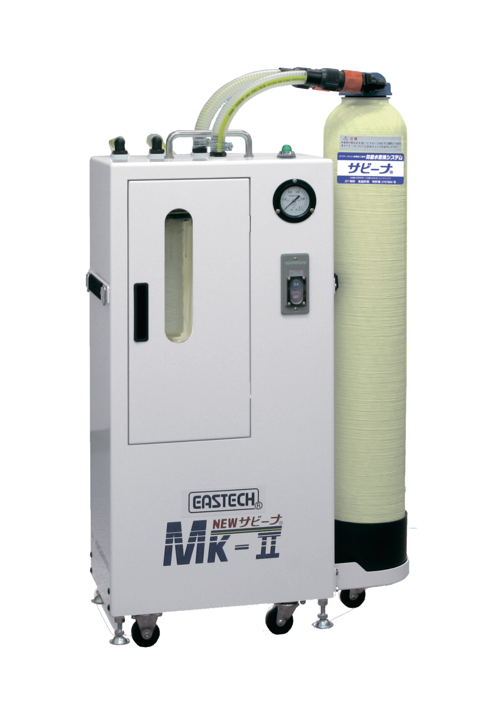 防錆水変換システム「サビーナ」は放電加工液を錆びない水に変換し鉄系ワークに発生する錆を抑制。環境問題や労働者の健康問題に取組む多くの企業様に支持されている。