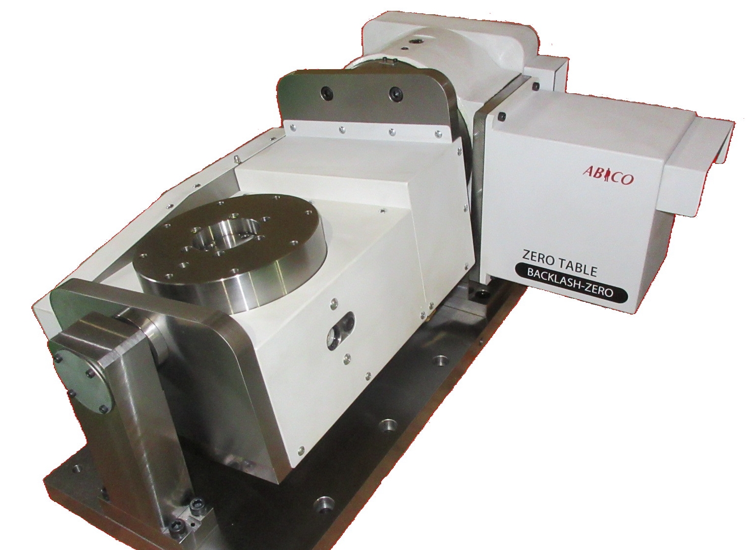 CNC チルトテーブルです。 繰り返し精度±0.0005deg以下です。 ローラーカムを使ったバックラッシレス構造です。