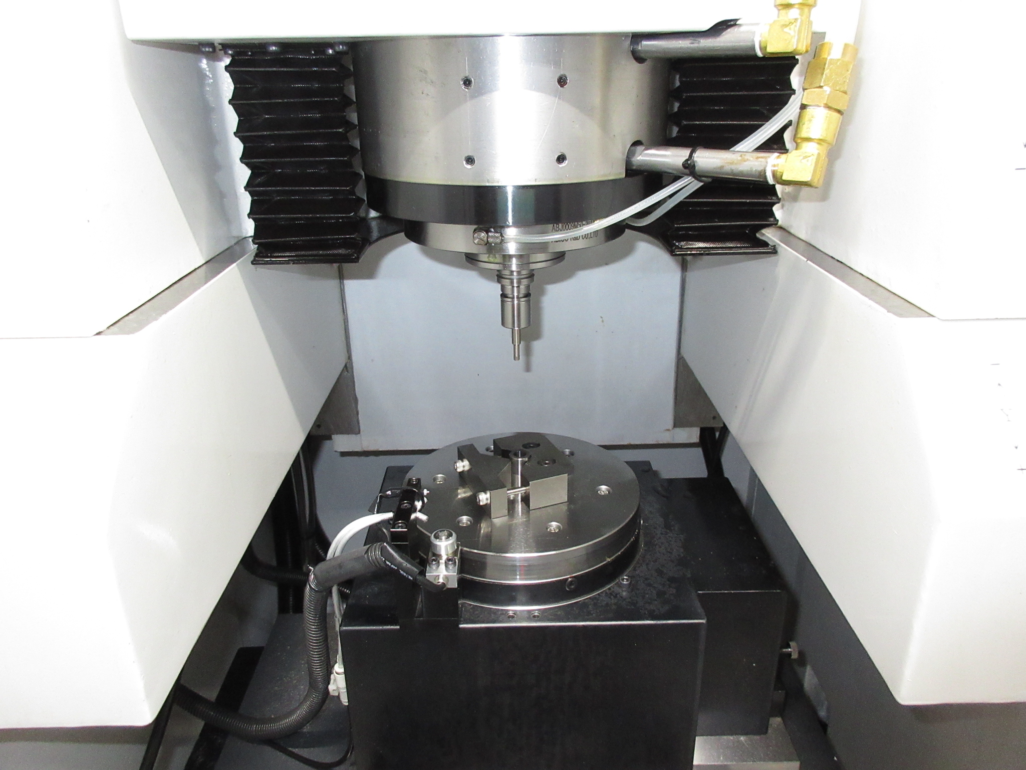 研削用の40,000回転スピンドル ホルダーはHSK-E25で工具交換時の繰り返し精度は±0.001mm 砥石交換しながら仕上げ研削が可能 CNC制御装置と同期運転