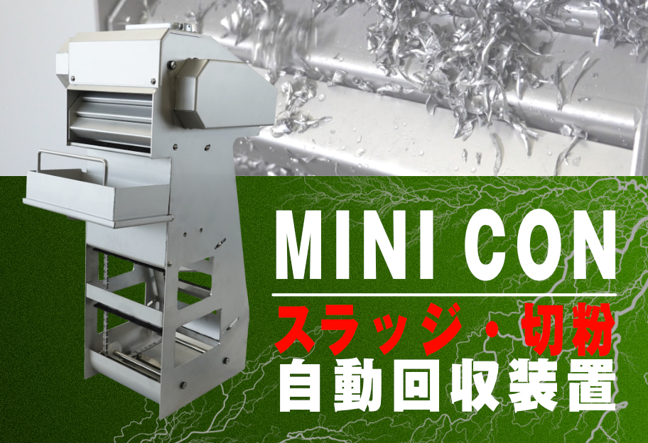 機械加工に伴って発生する切くずを自動回収する超小型装置。従来製品にはないコンパクトなサイズなので、クーラントタンクへ簡単に設置できます。