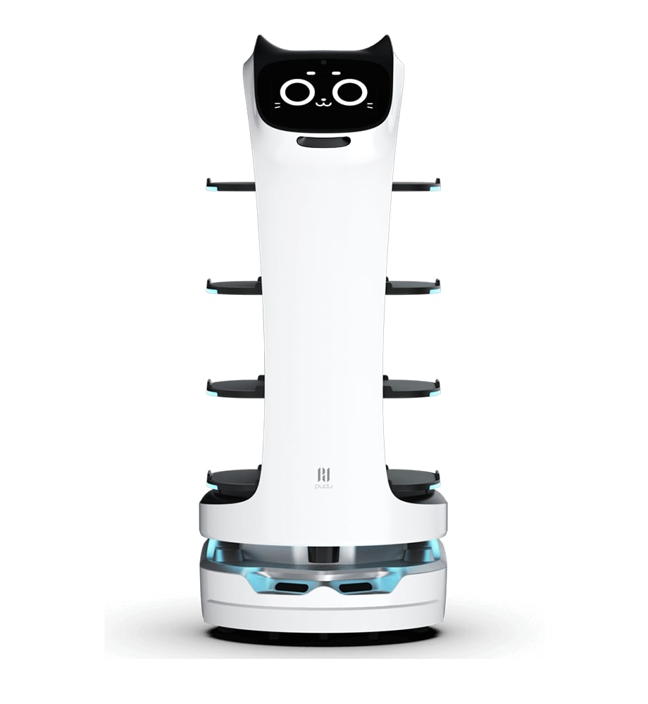 配膳ロボットというジャンルの小型AMRです。安価&簡単設定でお使いいただけます。障害物回避もサッとできますし、80cmの隙間があれば走行可能!
