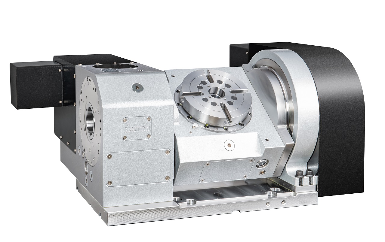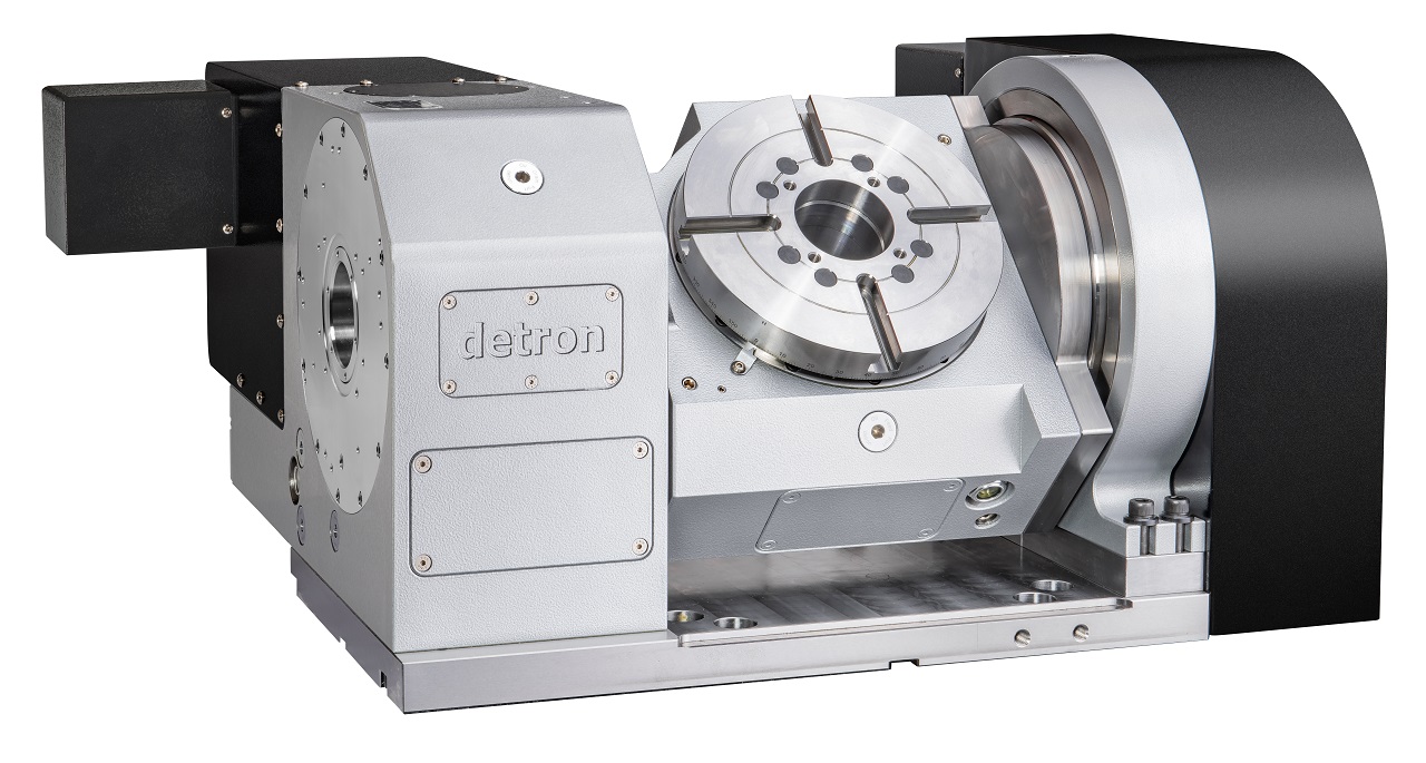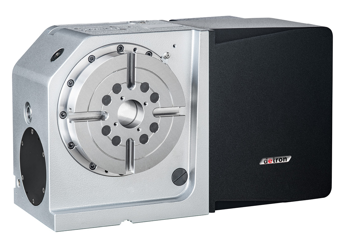 テーブルサイズ:φ210mm 空圧クランプ クランプトルク:回転軸400N.m/傾斜軸600N.m 最高回転数:回転軸50rpm/傾斜軸33.3rpm(モータ3000rpm時)