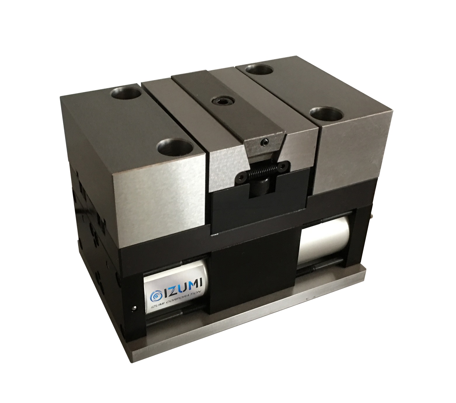 イズミコーポレーションは長年にわたるフライス盤及びマシニングセンターによる精密部品加工分野での経験を生かし、現在はマシニングセンター加工の高効率、高精度、治具レス、無人化をコンセプトとした汎用治具バイス ”ディペンドバイスシステム” をメインに工作機械用各種ワーククランプシステムを製造販売しております。生産現場の視点に立って、お客様に信頼して頂けるユニークな製品開発を続ける事が使命と考えております。