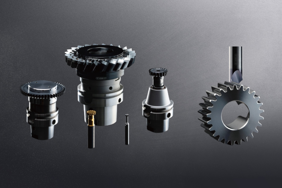 モジュール m 0.2~ m 8.0対応 超硬ギヤスカイビング工具 ソリッドタイプや刃先交換式を展開 ワンチャッキングでギヤ端面バリ取り 複合加工機でギヤ加工後のバリを約2秒で除去