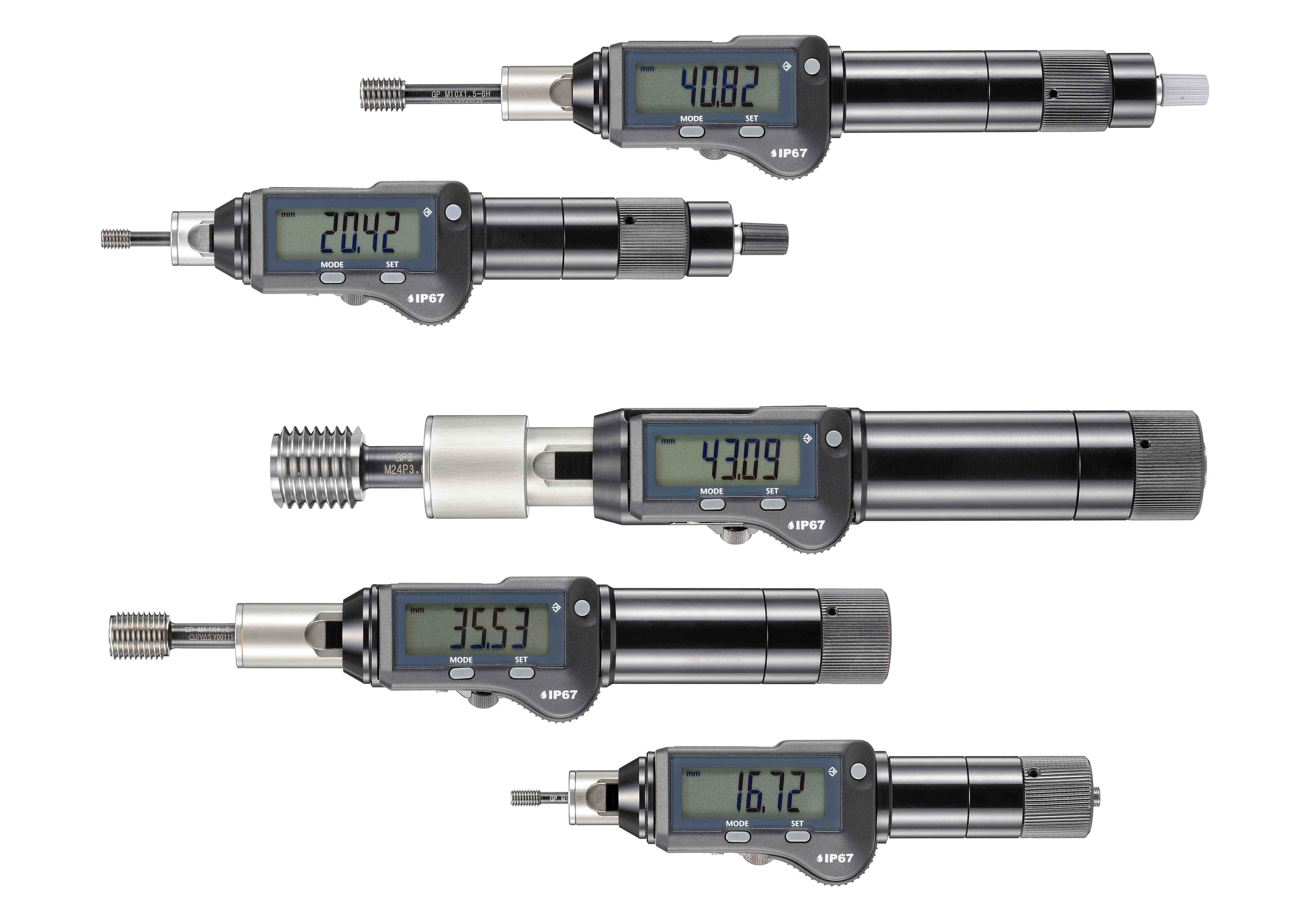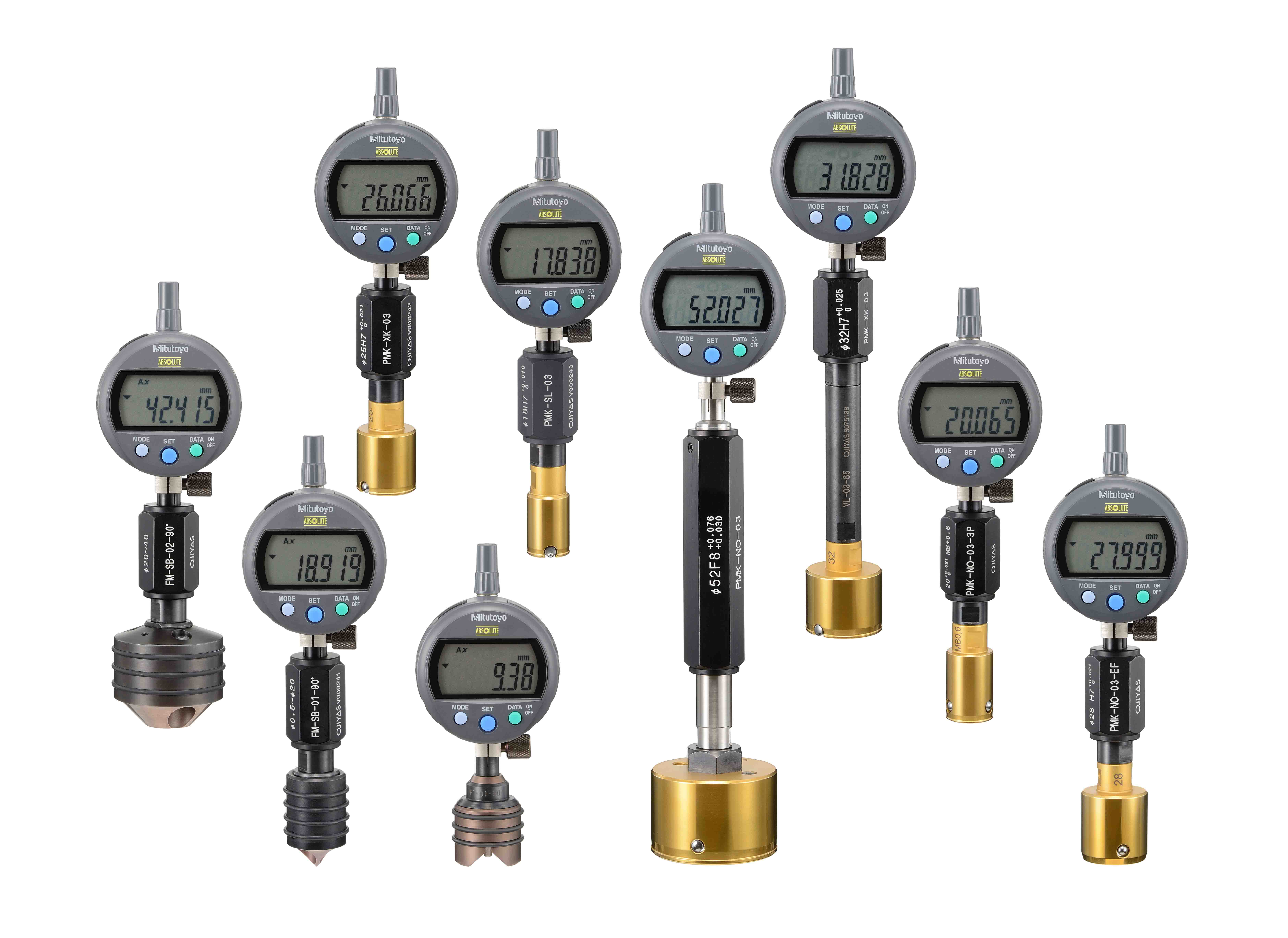 精密測定ヘッド「PMK」は内径、外径、二面幅や面取り径等の測定をマスターとの比較測定により高精度な測定が可能である。ダイヤルゲージの数値を読み取るだけで高精度の繰り返し精度での測定が可能。空気マイクロメータのように圧縮空気や電源を用いずに測定ができることも利点の一つである。測定物の形状に合わせて測定ヘッド形状は複数ラインナップがあり、継足しロッド等のアクセサリ類も豊富なバリエーションを準備している。
