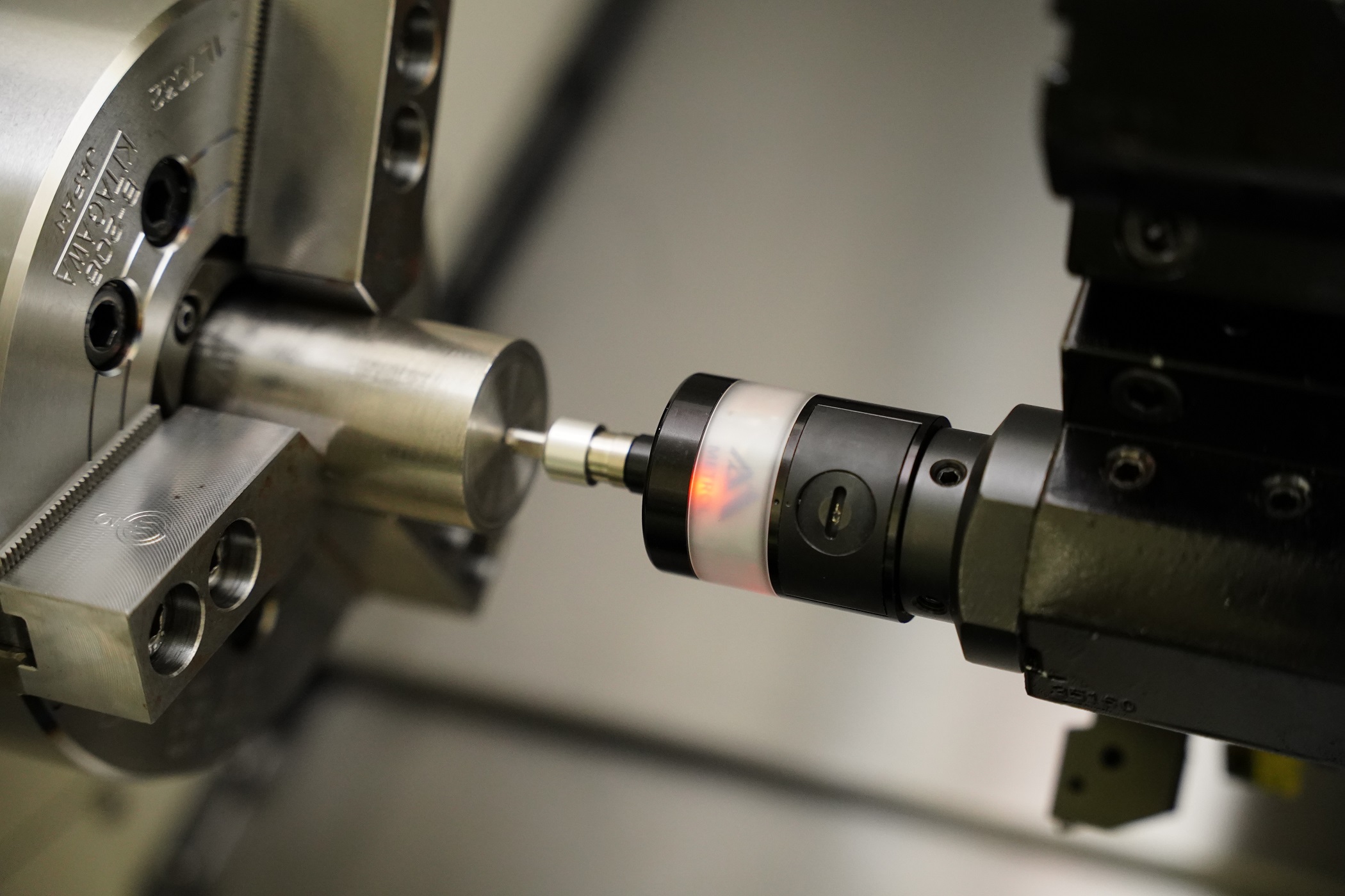 RC-P10DXは高精度なワーク機内計測により、加工不良の防止や検査工程の負荷削減に貢献します。 無線通信式のため、タレット旋盤や複合加工機などへの搭載が可能です。