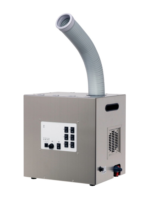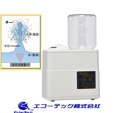 超音波振動子を高速振動させたエネルギーを液面に集中させ、液剤を飛散させる超音波霧化器JM-200。次亜塩素酸系液剤50ppm以下に対応しています。 除菌、消臭に効果的です。