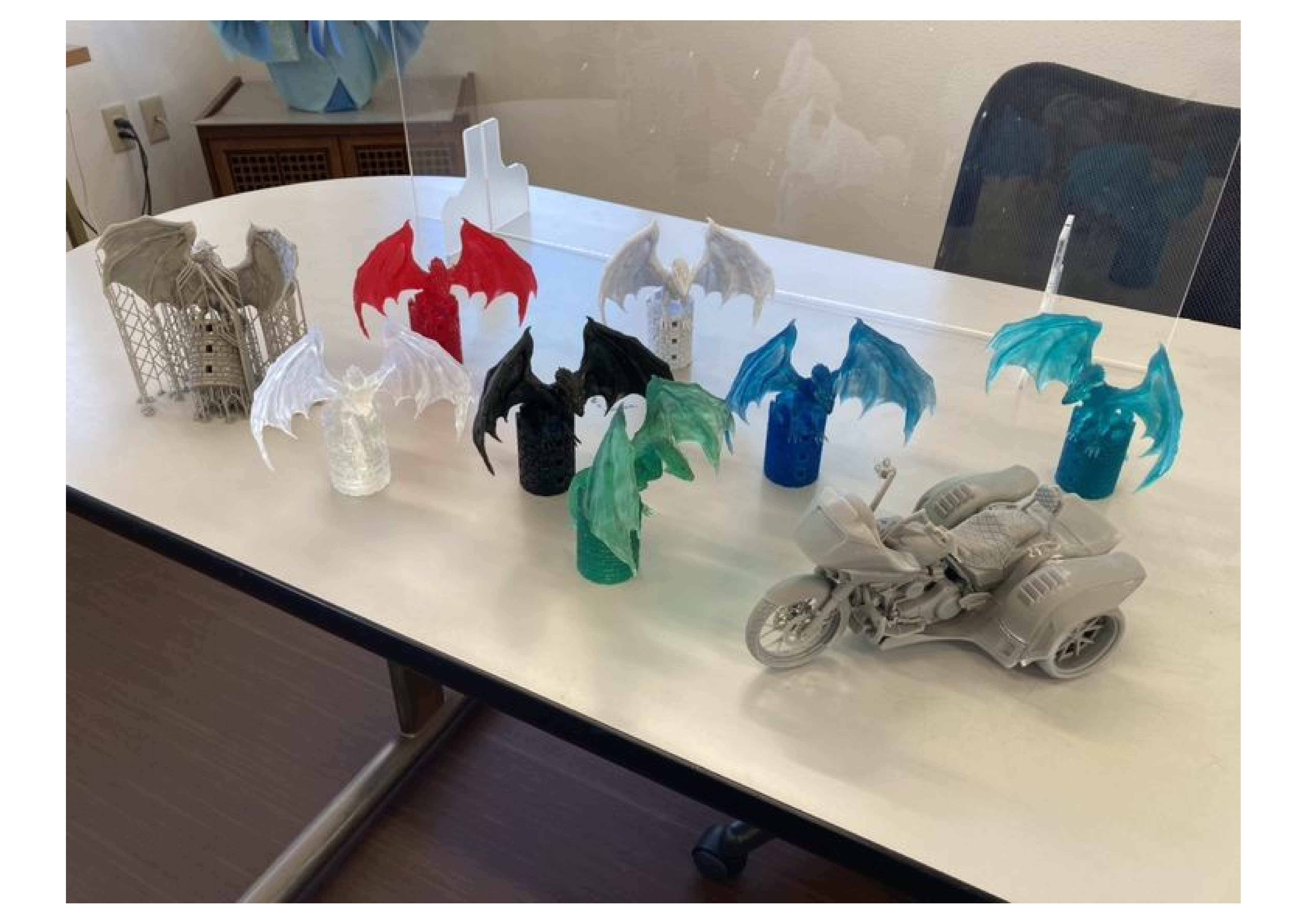 3Dプリンターはデータ、図面作成、造形を行っており、一点物の再現、サンプル製作等が可能。