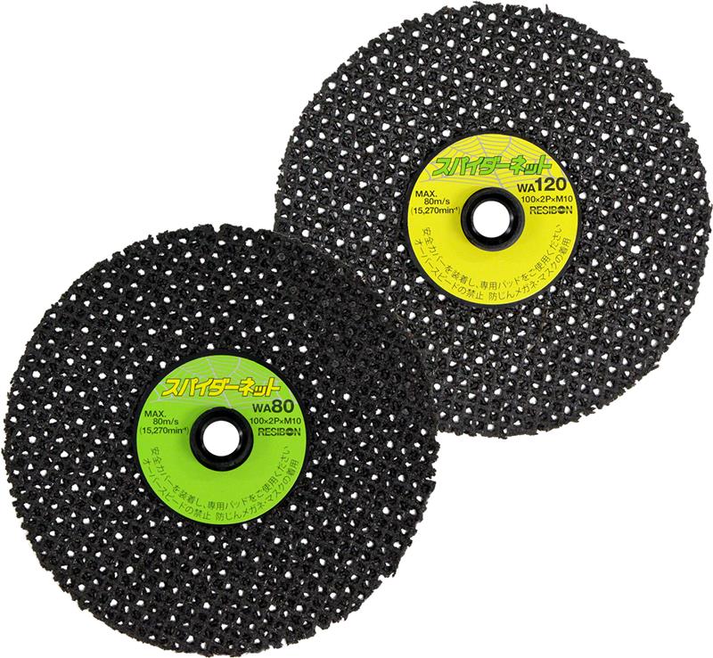 平面研磨に適したガラスクロスディスク。目詰まり・研削焼けが少なく、鋼材に食い込まずに焼け取りや平面出しが可能だ。研磨し続けても形状が変化しづらく「面」での研磨が持続する。