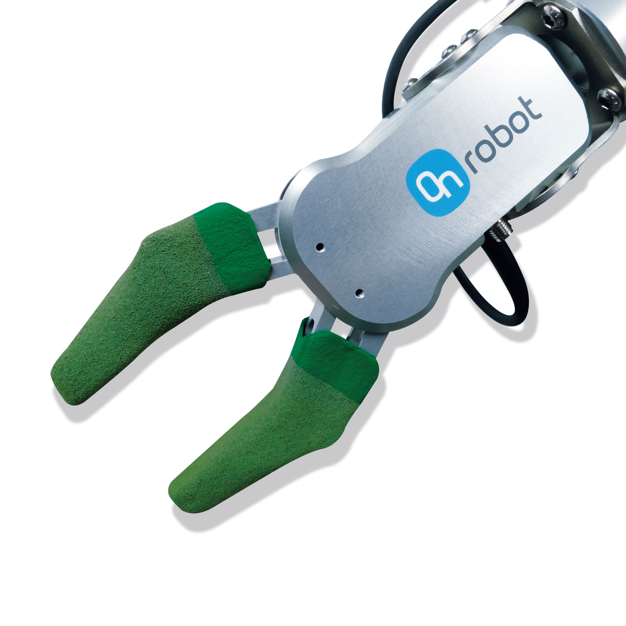 NBR樹脂を主体とした自動機専用ツメ部カバーのROBOFINGERは 圧倒的な滑りにくさ、極めて高い耐久性と簡単装着性を実現。 把持部形状に合わせたカスタマイズ加工可。