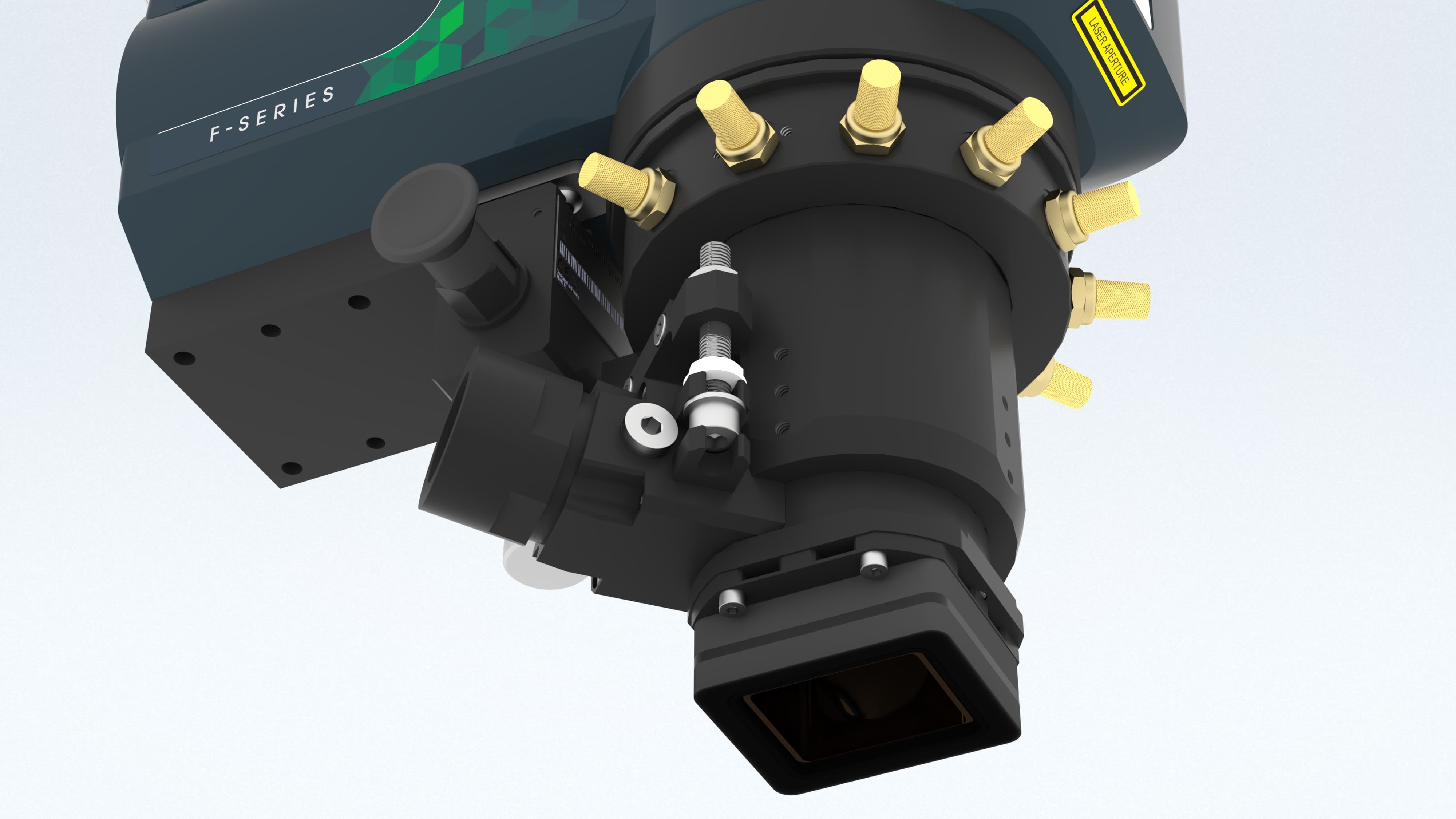 インライン式レーザーマーキングヘッドに取り付け、レーザー光を遮断。シーリングアタッチメントはマーキングパーツにピッタリと接触。集塵装置で粉塵や煙を安全に排出。