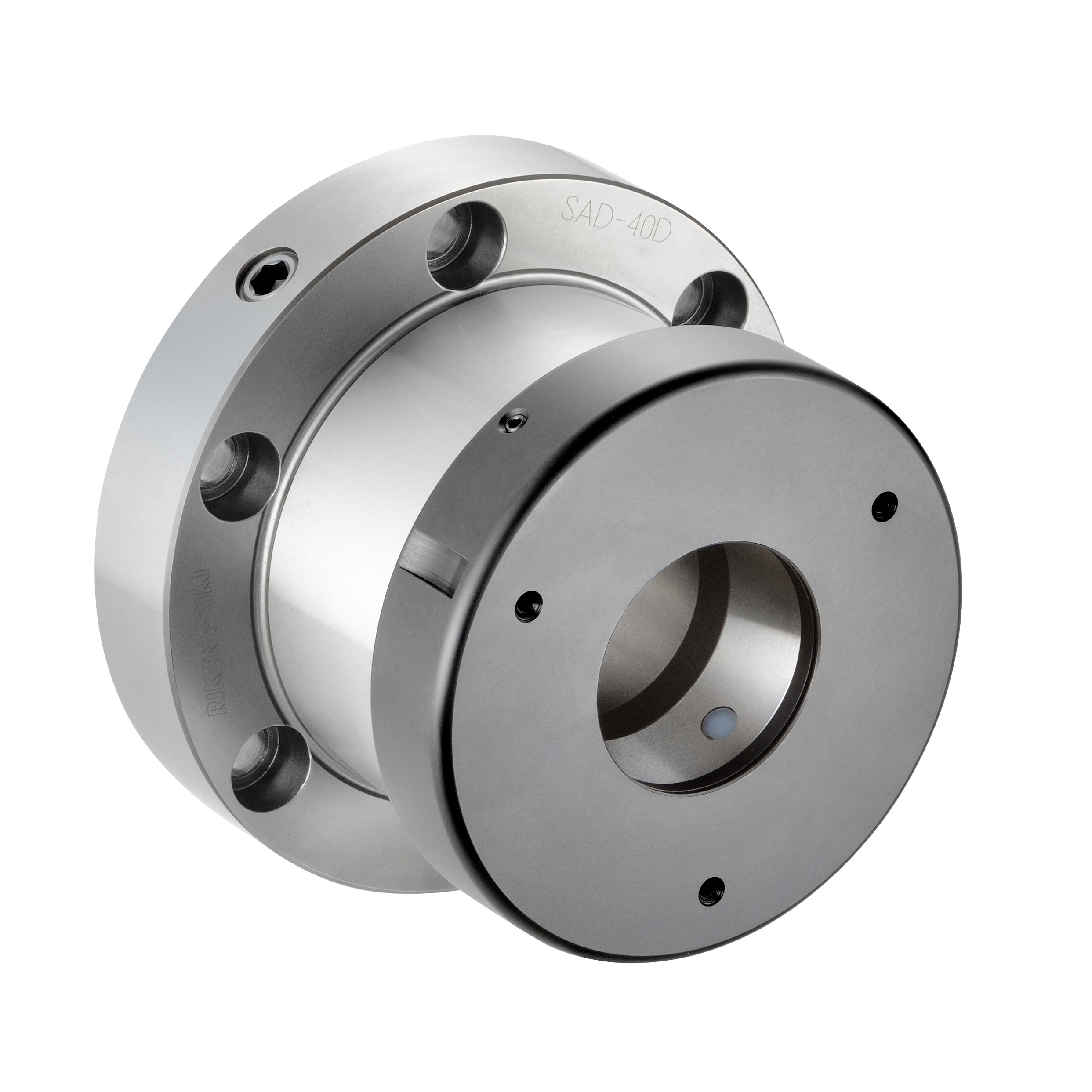 リニューアルしたSADチャックをはじめ、各種標準コレットチャックを展示。 高精度と即納性が強み。