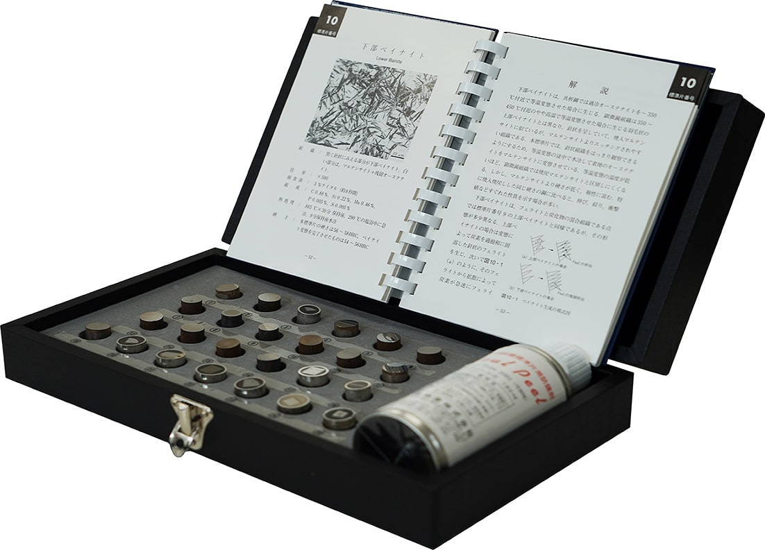 主力製品は、硬さ基準片となっているが、その他、顕微鏡組織標準片やハードネスター、火花試験標準片といった金属工具も製造・販売している。