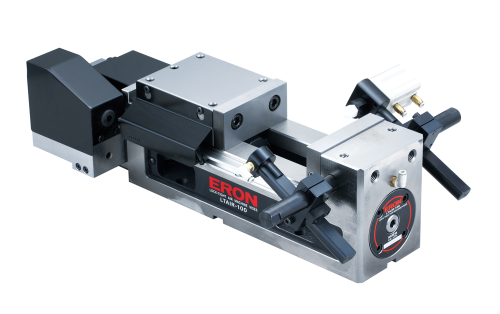 掴み代3mm、センターで平行に強力クランプでき、ワンチャッキングで5面加工が可能。口金の組換えで口開きを増大化、ショルダーボルトにより組換え時の再現性も高精度です。