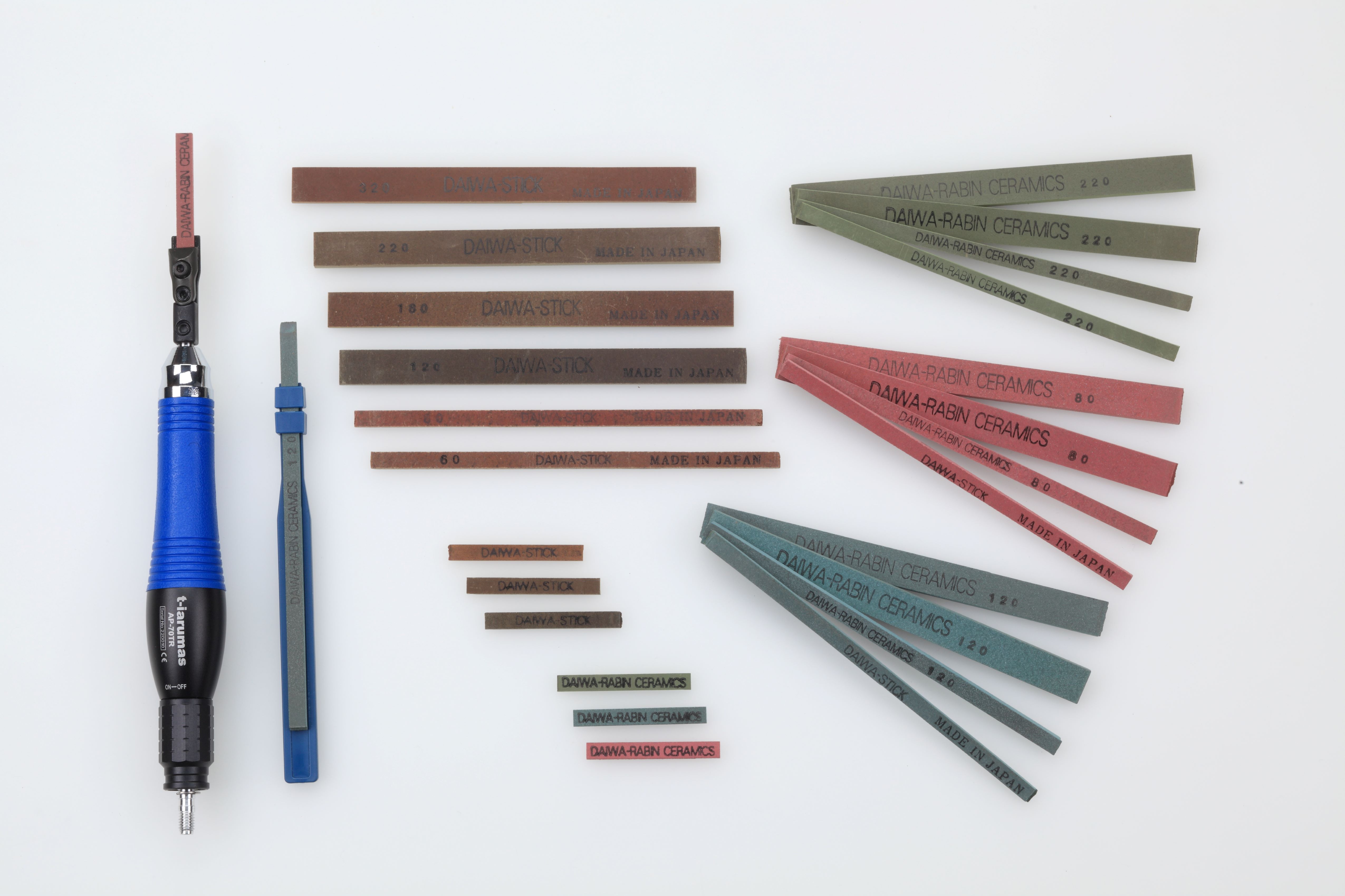金型研磨、仕上げ用の画期的なスティック砥石です。ゴム弾性の作用により均一で細かい仕上がりを簡単に実現しますので、工程削減、作業時間短縮に貢献します。
