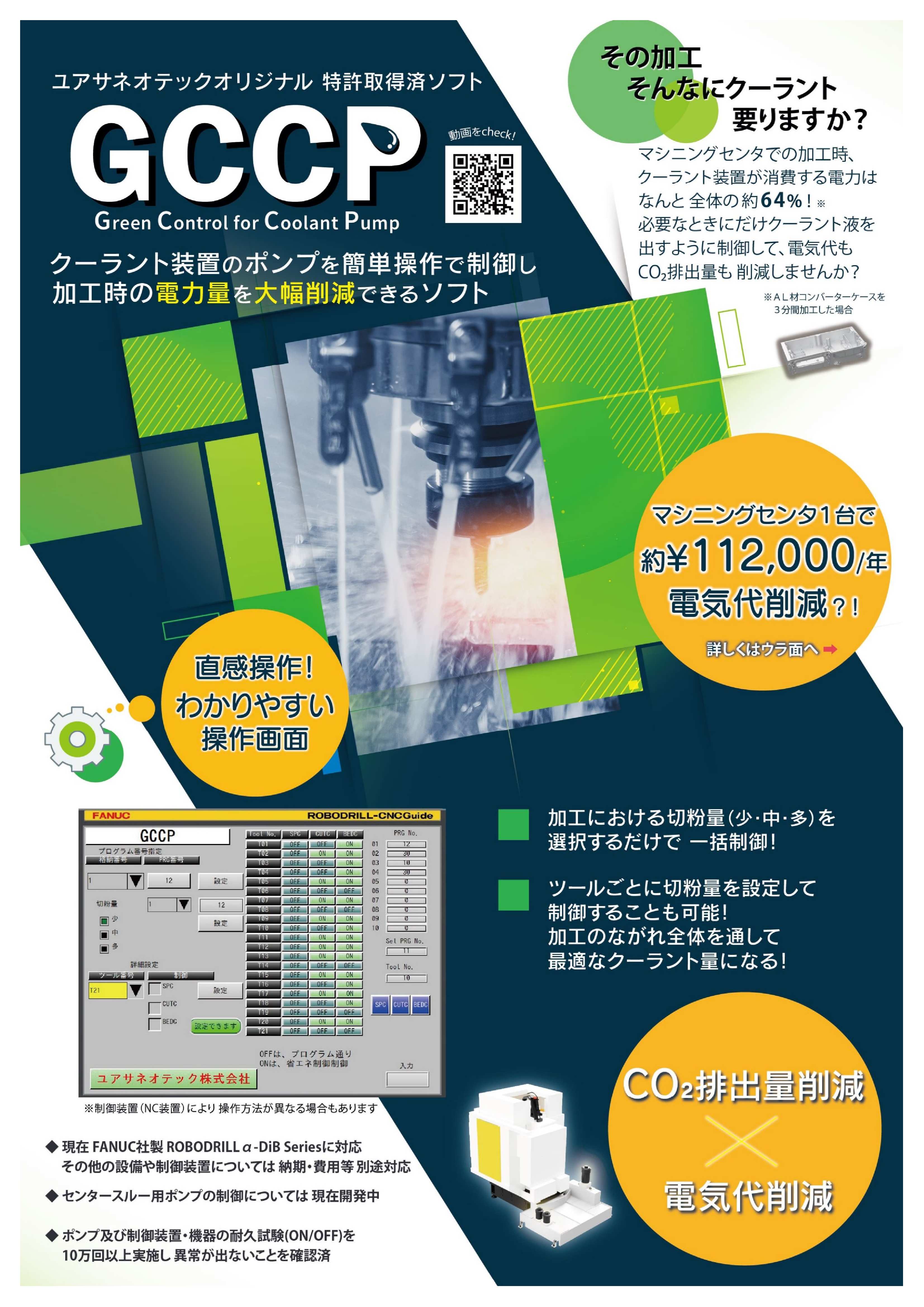 GCCPは工作機械の電気代を削減できる省エネ制御ソフトである。