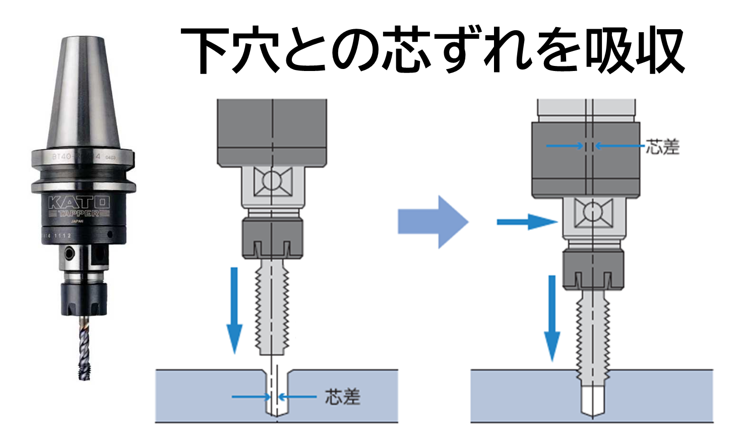 マイクロフロート(微少伸縮)により、タップにかかる負荷を軽減しタップ寿命UP、ねじ山をきれいに!