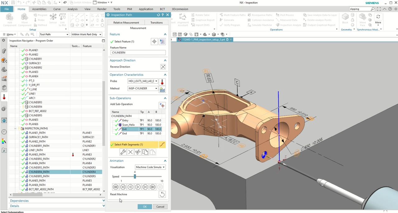 NX CMMは三次元測定用プログラムを作成するアプリケーションです。 3Dモデル上で測定プログラムのパス生成、シミュレーションによる干渉チェックなどを簡単な操作で行えます。
