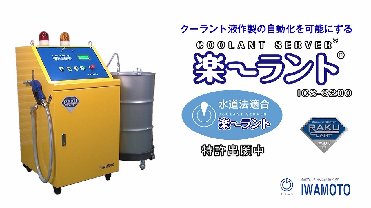 切削加工に使用する水溶性クーラントを、指定した濃度に自動で希釈し、配管を通せば各工作機械に自動で供給も出来る装置です。水道法に適合しておりAC100Vで稼働が出来るので、水源や設置場所を選ばず、大企業様から中小企業様まで幅広くお使い頂いております。岩本工業の本業は金属加工業であり、改善活動から生まれた製品です。