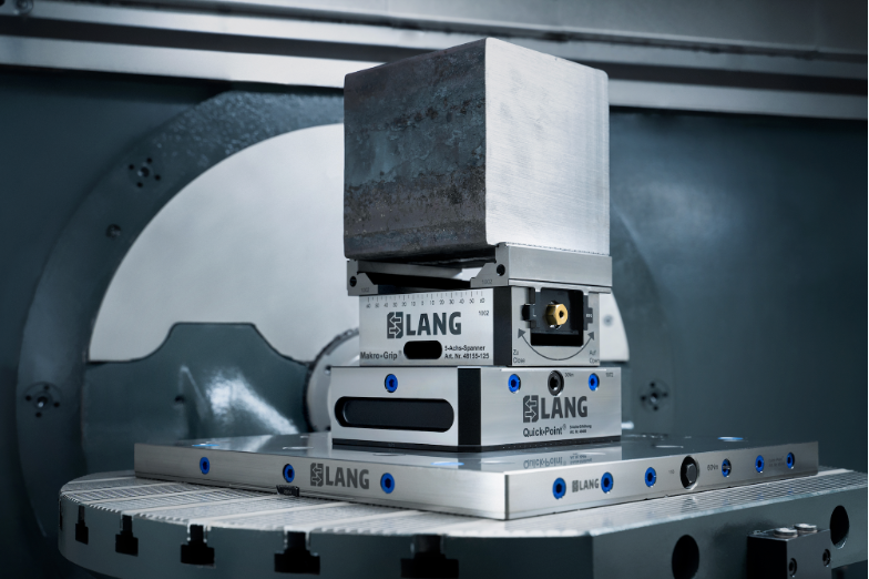 加えて、工作物保持具としてラング社のクランピングシステムを提案する。高い精度で工作物を固定するため、加工作業全体の精度と再現性の向上を実現する。