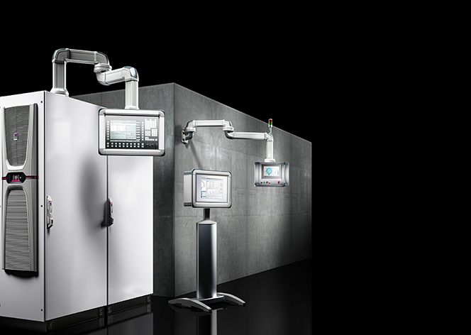 リタールは「制御盤設計・製造の効率化」と「省エネ」をテーマに、エンクロージャーTS 8 連結型システムを使った「3D制御盤」、省エネ・ハイブリット冷却の「Blue e+ S」など、5製品を展示する。