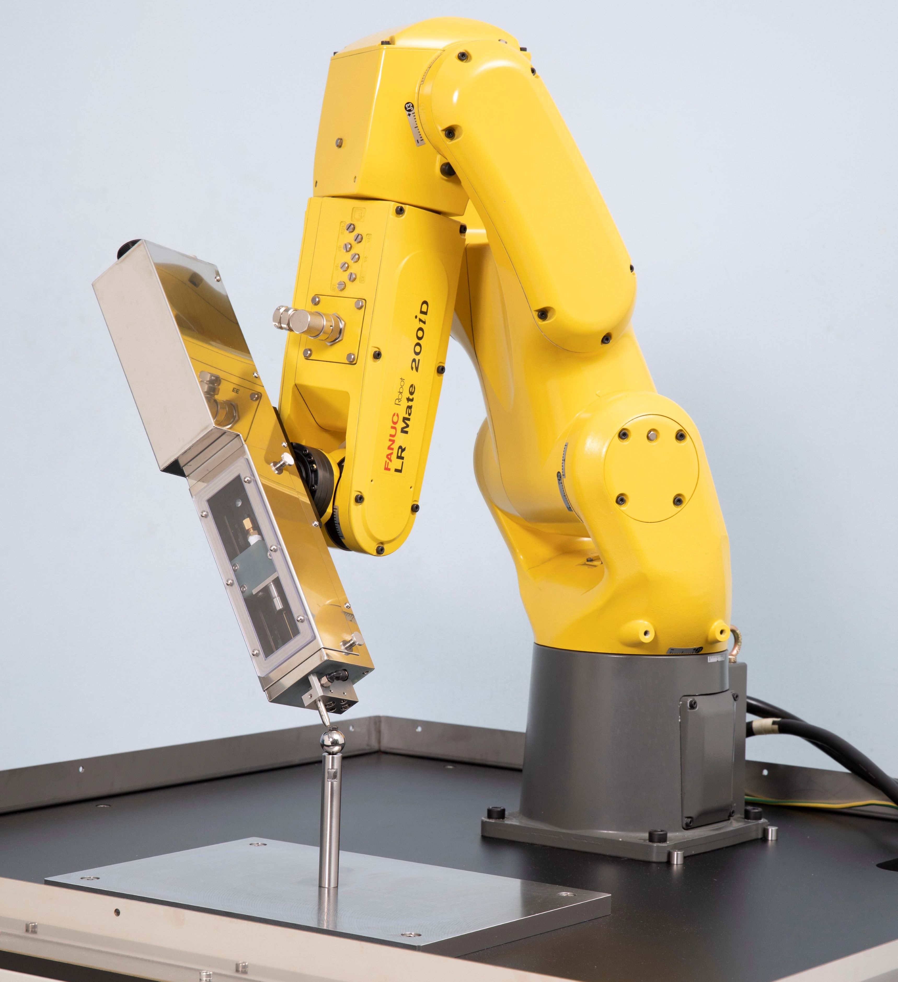 ロボットアームの先端にも取り付けることが可能で、あらゆる角度からも加工を実現した。