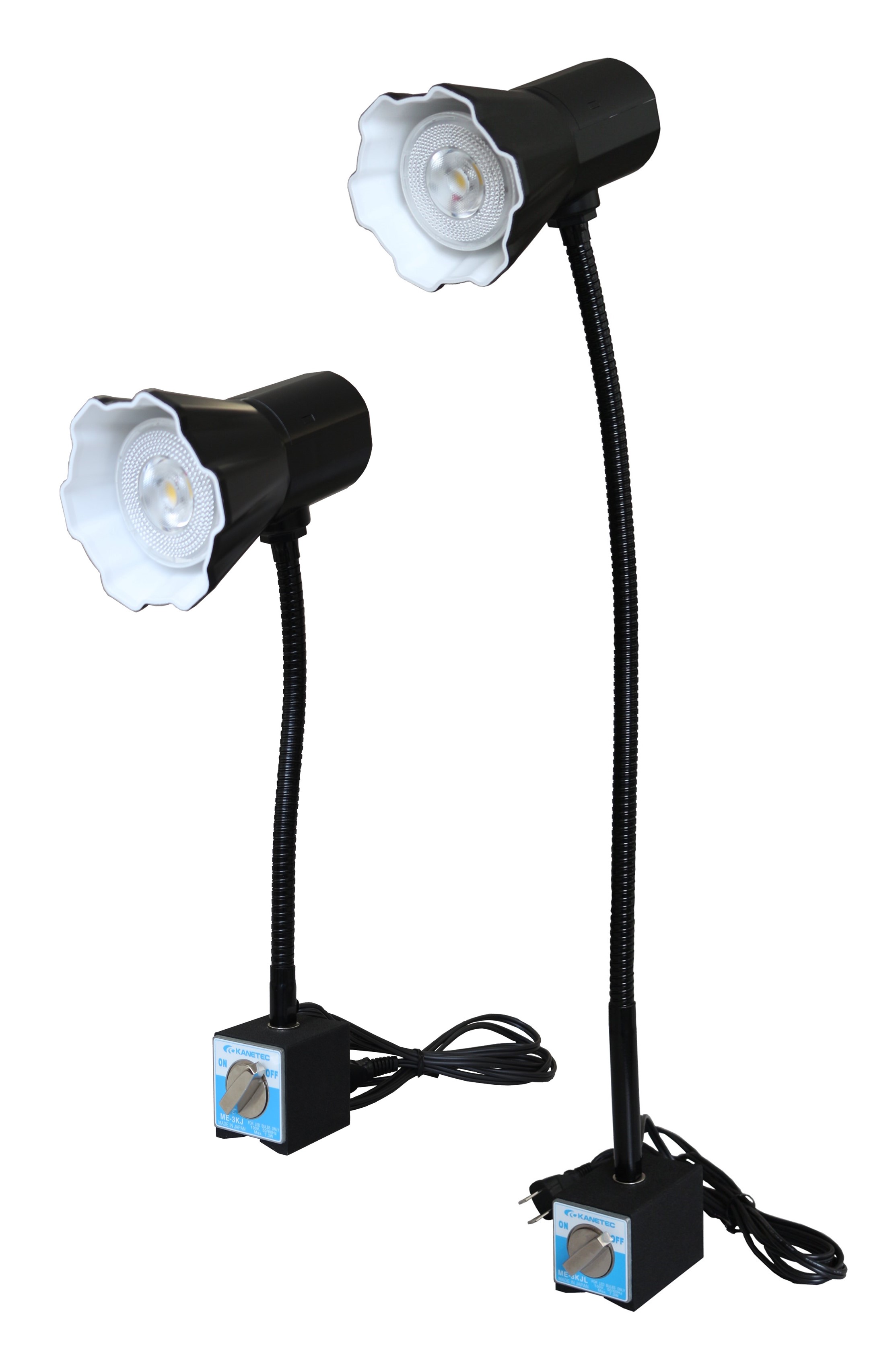 加工物や手元へのスポット照明に最適。工作機械やスチール作業台へマグネットで簡単据え付け。自然光に近い昼白色仕様(3KJ/L)に、検査用に好適な電球色仕様(-OR)を追加。