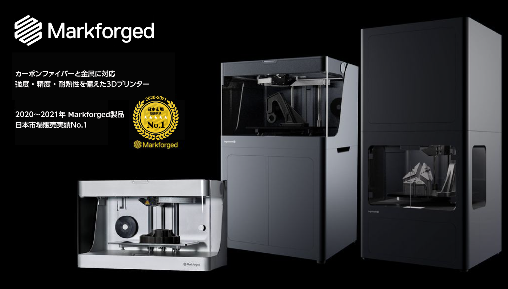 Markforged(Mark Two,X7,MetalX) カーボンファイバーなどの繊維材料によって、軽量かつ驚くべき強度のパーツを産業レベルで造形することができます。
