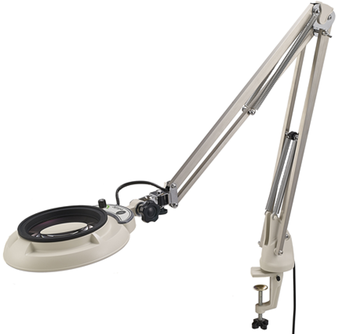 帯電管理値±100V以上の現場で使用できる、スタンダードシリーズESD/ESA対策照明拡大鏡のコンパクトフリーアームタイプ。