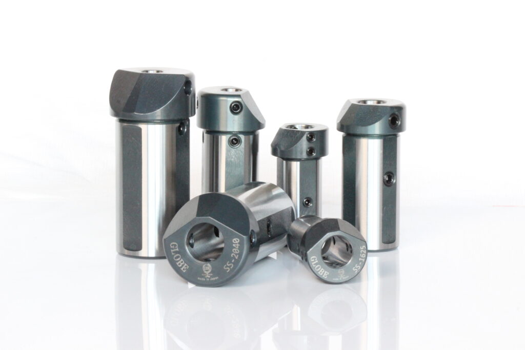 クーラントをボーリングバーにあてやすいデザインのCNC旋盤用ボーリングバースリーブ「GLOBEスタンダードスリーブ」です。ツバ部分を斜めにカットしてあります。
