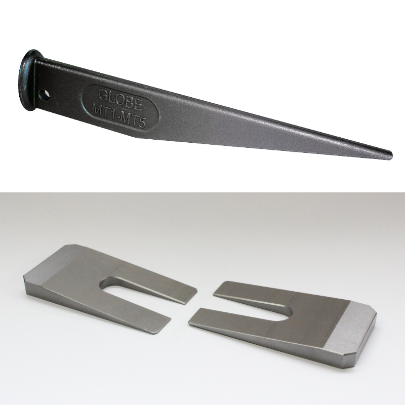 モールステーパーシャンクドリルを取り外すときに使用するドリフトとアーバーやボール盤主軸などから、テーパーを傷めずに、チャックを取り外すことができるドリフトです。