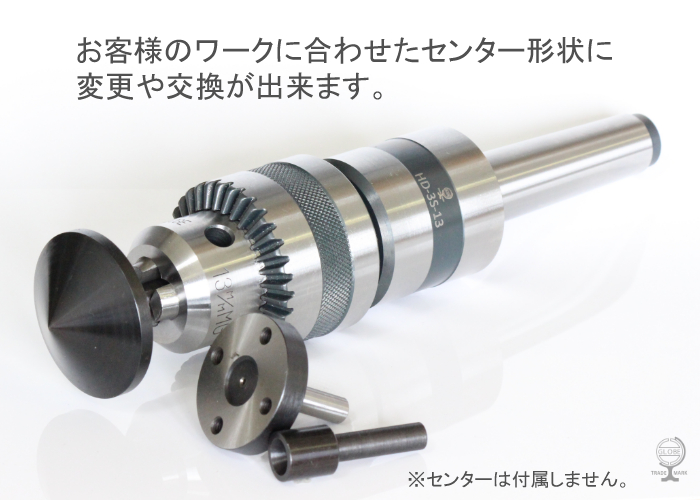 ドリルチャック付ライブセンターです。小径ワークやセンター穴の無いワークの両センター加工など振れ止めに最適です。粉塵や切削油が侵入しにくい構造です。