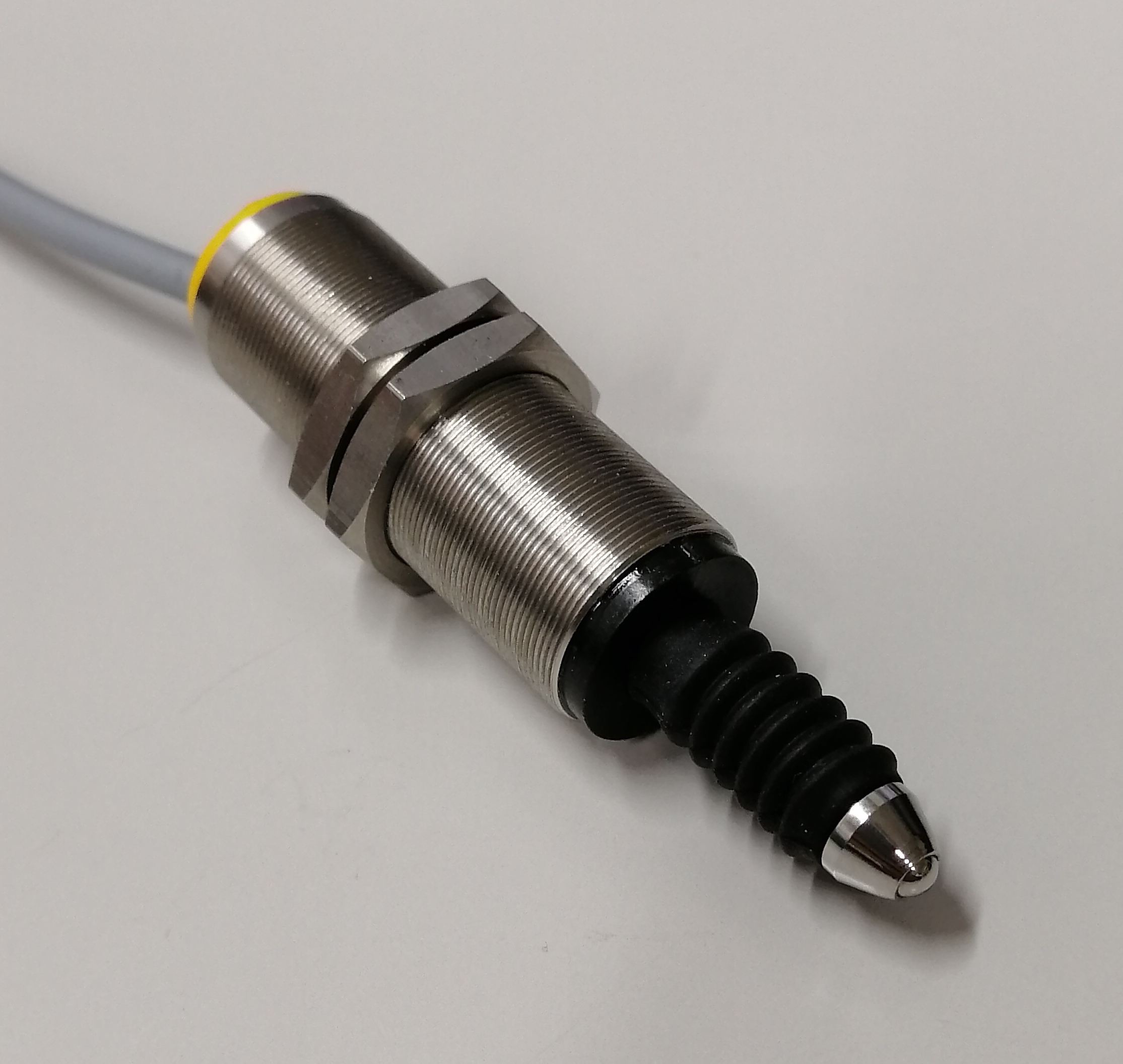 プローブの押し込み量に応じて電圧出力するスイッチです。 ワークの厚みなど電圧差で判別できます。