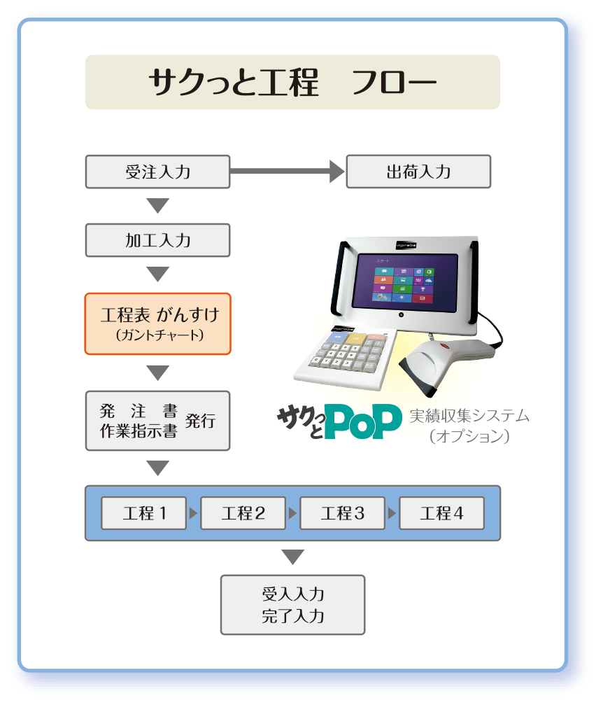 部品名、工程手順を登録することにより、作業指示書の発行が素早く行える工程 管理システム。社内の工程指示の他に、材料発注や外注発注も可能。遅延防 止、納期短縮が図れます。