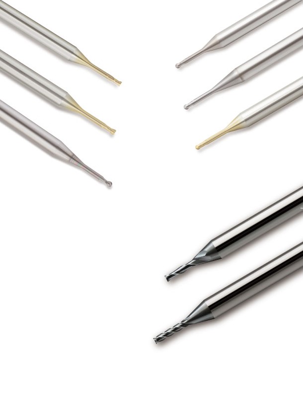 世界トップシェアの電子回路向けドリルの生産ノウハウを活用し、 高品質、高精度、低コストと三拍子揃ったエンドミル。 外径3mm以下のコストダウンに大きな効果あり。