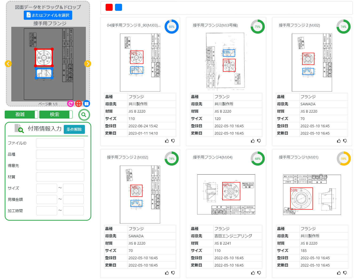 簡単な操作で過去の図面から類似した形状のものをAIが検索。 見積時の精度を向上、見積にかかる時間の大幅な短縮を実現。
