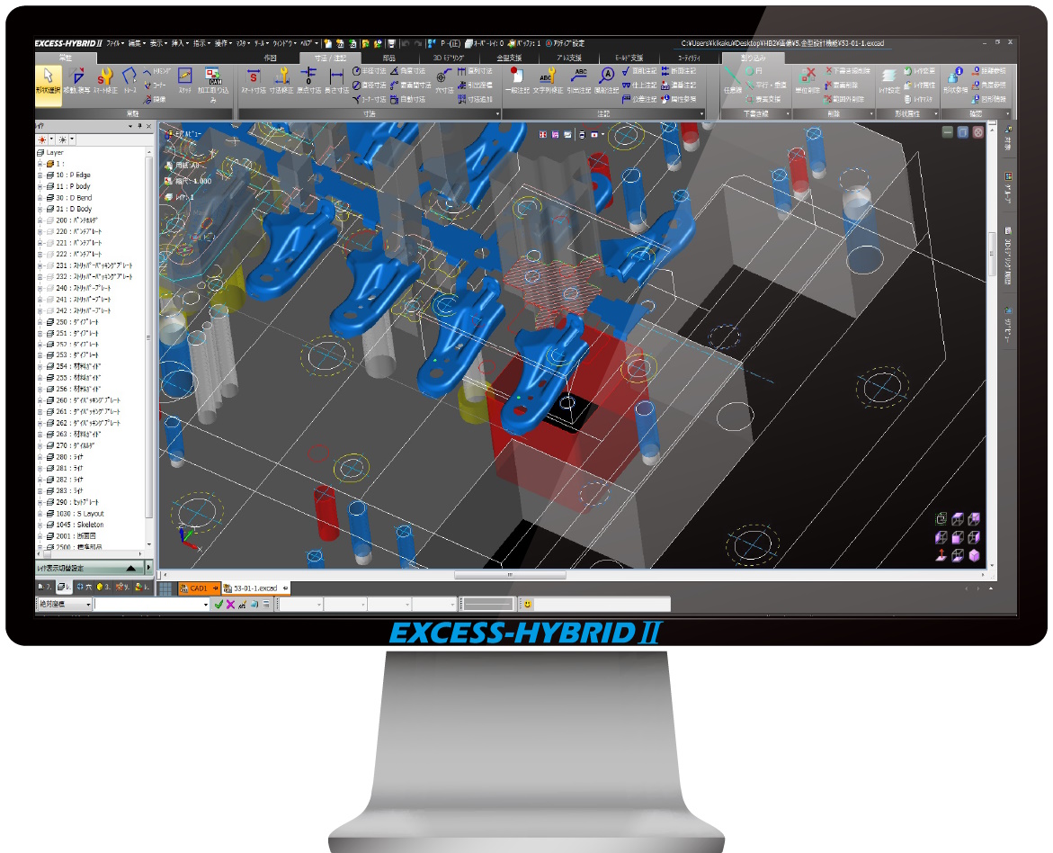 金型設計製造用CAD/CAMシステムです。2Dと3Dデータの同時作業・検討を可能とし、試行錯誤を伴う金型設計に対して極めて効率的かつスピーディーに対応します。