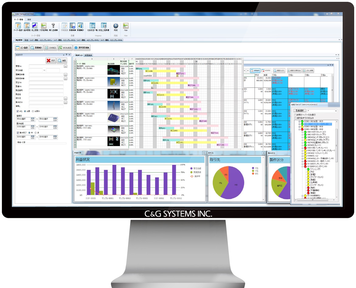 受発注情報と工程情報をDBで一元管理し、日程・進捗・実績・負荷・原価をリアルタイムに連携することで「見える化」を実現。生産性のムダを無くし効率化を図ります。