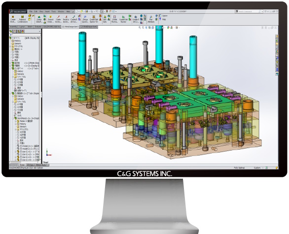 「SOLIDWORKS」をベースとし、プレス金型設計機能、モールド金型設計機能、金型・部品加工機能を完全アドインする一貫性を持たせたCAD/CAMシステムです。