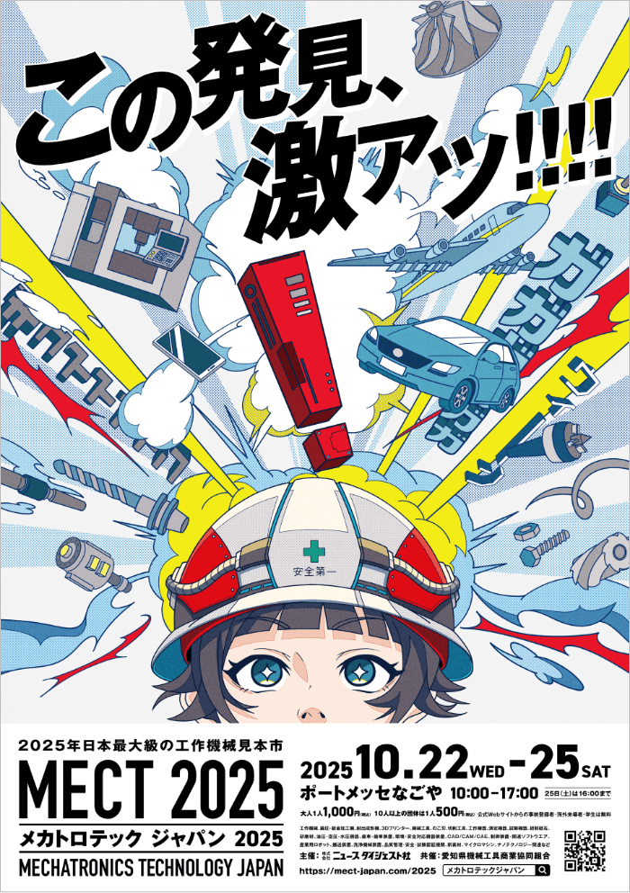 MECT is the machine tool show started in 1987. It is held in autumn every two years at Port Messe Nagoya in Nagoya city and is the biggest machine tool show in odd-numbered years. MECT2023 attracted 490 companies and organizations occupying 2,101 booths and 77,225 visitors attended. In 2025,it will be the 20th time.