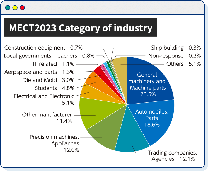 MECT organizer actively mobilize students from graduate college, university and specialized high school over Japan. Seminar program for students called “Machine Tool Top Seminar” is held by JMTBA which is special cooperating organization of MECT to introduce attractiveness of working in machine tool industy during the event.