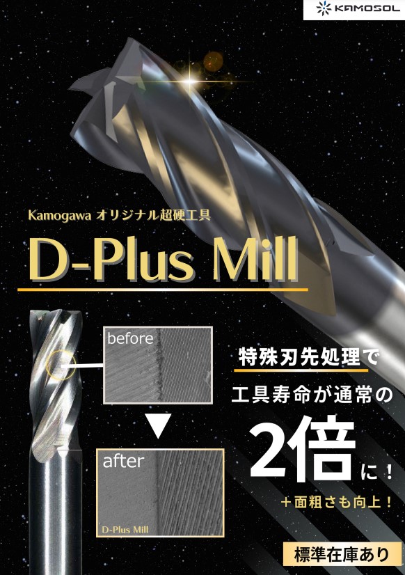 寿命2倍以上の性能を実現した超硬エンドミルの「D-plusミル」やオーダーメイドでお客様の加⼯に合わせて設計を⾏う「超硬リーマ」、鋼の⽳あけ加⼯・仕上げを1発で⾏える「ワンショットリーマ」、